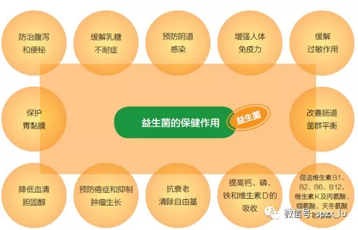 因此,發達國家營養專家宣導,鼓勵身體亞健康人群和60歲以上的人每天飲用益生菌,以補充體內的"有益"菌類,讓有益菌始終處於較高水準,從而抑制有害菌生長,減少腸道感染的發生率。"有益"菌類還可促進消化、減少毒素產生、減少腸胃功能紊亂、有助腸蠕動、有效改善便秘。此外,益生菌還可預防腸道疾病,降低患結腸癌的風險。