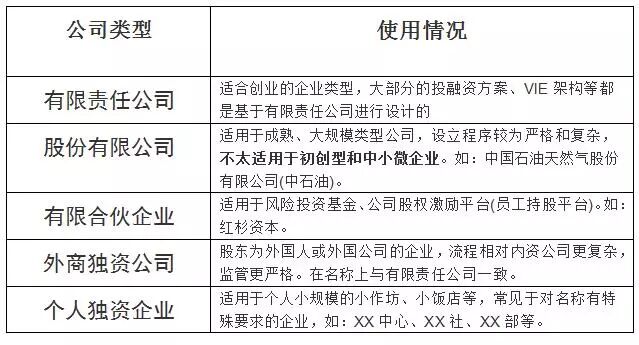 首先我們來看看常見的公司類型: