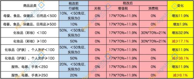 跨境電商零售進口稅收政策與調整前行郵稅收對比