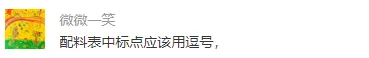 《預包裝食品標籤通則》(GB 7718-2011) 問答(修訂版),第二十二條“配料表中配料的標示應清晰,易於辨認和識讀,配料間可以用逗號、分號、空格等易於分辨的方式分隔。”所以在此用逗號分隔,並無不妥。
