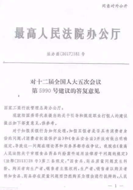 現就陽國秀等代表提出的關於引導和規範職業打假人的建議提出如下答覆意見,供參考。