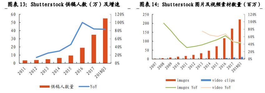 這一邏輯與海外圖片公司Shutterstock非常接近,供稿數量的增長帶來更高營收和客戶,更高的營收增長帶來更多的供稿數量增加。